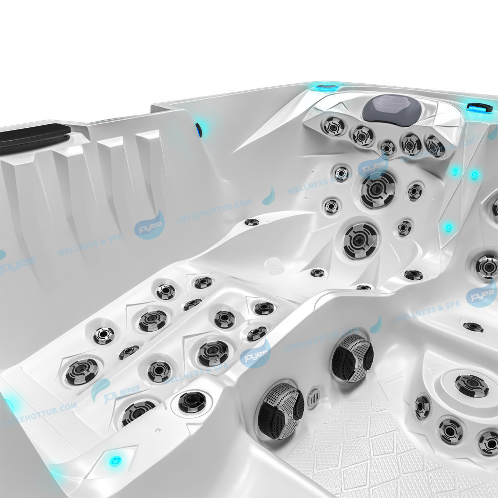 Множество пульсирующих и водоворотных форсунок, форсунок глубокого действия и аэромассажа спины, шеи, плеч, ног и стоп размещены таким образом, что, обладая массажной силой, абсолютно исключают жёсткое воздействие на организм. Вы гарантированно почувствуете потрясающий и полезный гидромассаж! Более того, вы можете менять местами форсунки, настраивая своё персональное место, регулировать интенсивность потока некоторых форсунок, а также интенсивность гидромассажа на пульте управления.