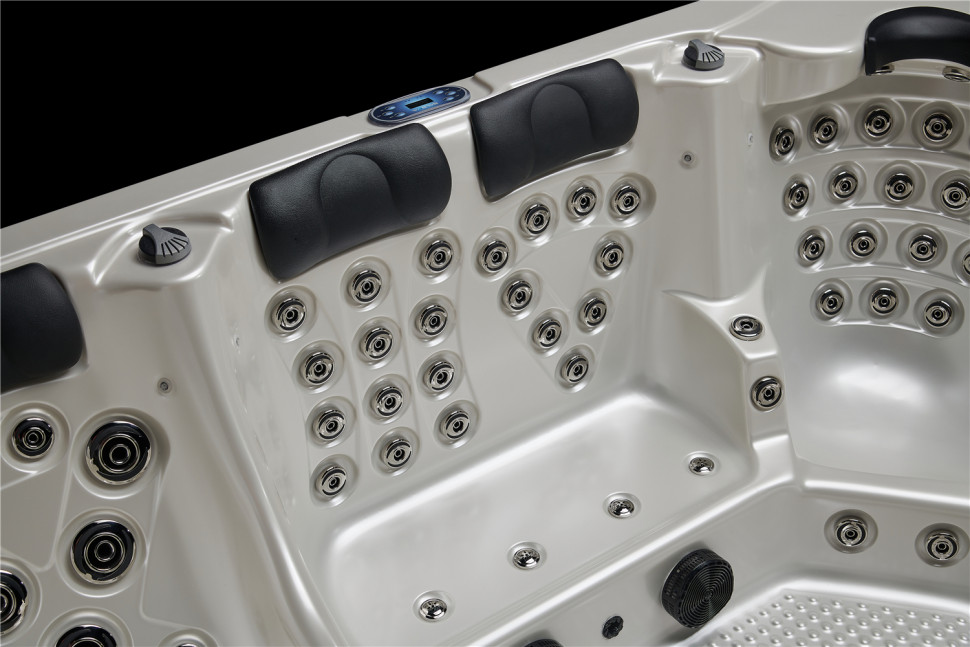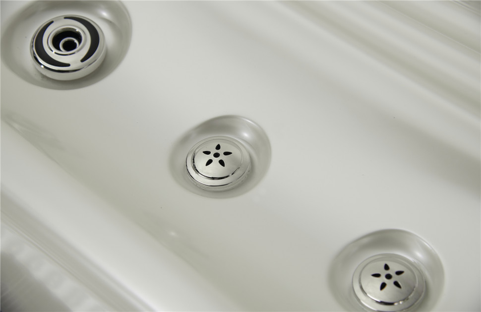 Множество пульсирующих и водоворотных форсунок, форсунок глубокого действия и аэромассажа спины, шеи, плеч, ног и стоп размещены таким образом, что, обладая массажной силой, абсолютно исключают жёсткое воздействие на организм. Вы гарантированно почувствуете потрясающий и полезный гидромассаж! Более того, вы можете менять местами форсунки, настраивая своё персональное место, регулировать интенсивность потока некоторых форсунок, а также интенсивность гидромассажа на пульте управления.