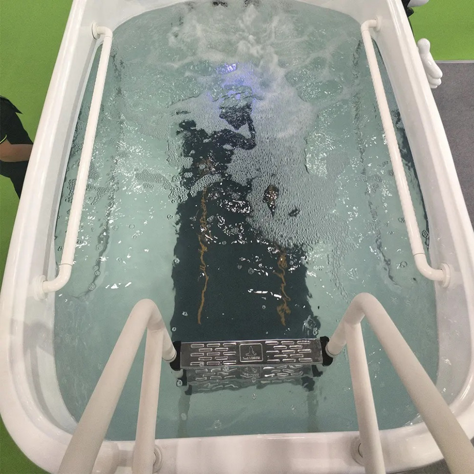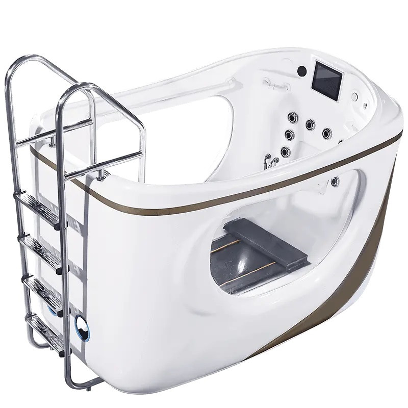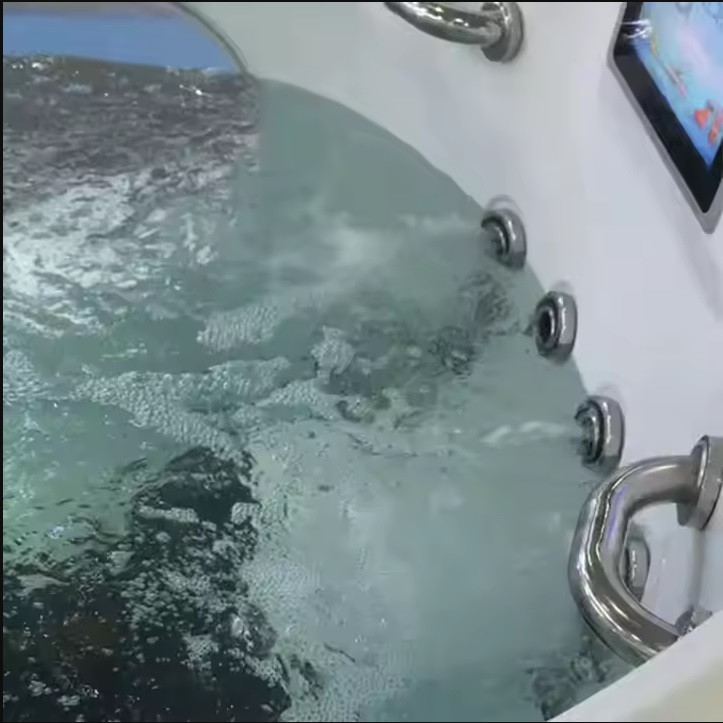 Интегрированный шезлонг с расположенными по длине форсунками обеспечивает последовательный массаж от плеч до голеней. Идеален для полной релаксации — вы лежите в комфортной позе, а система равномерно прорабатывает все мышцы корпуса и ног.